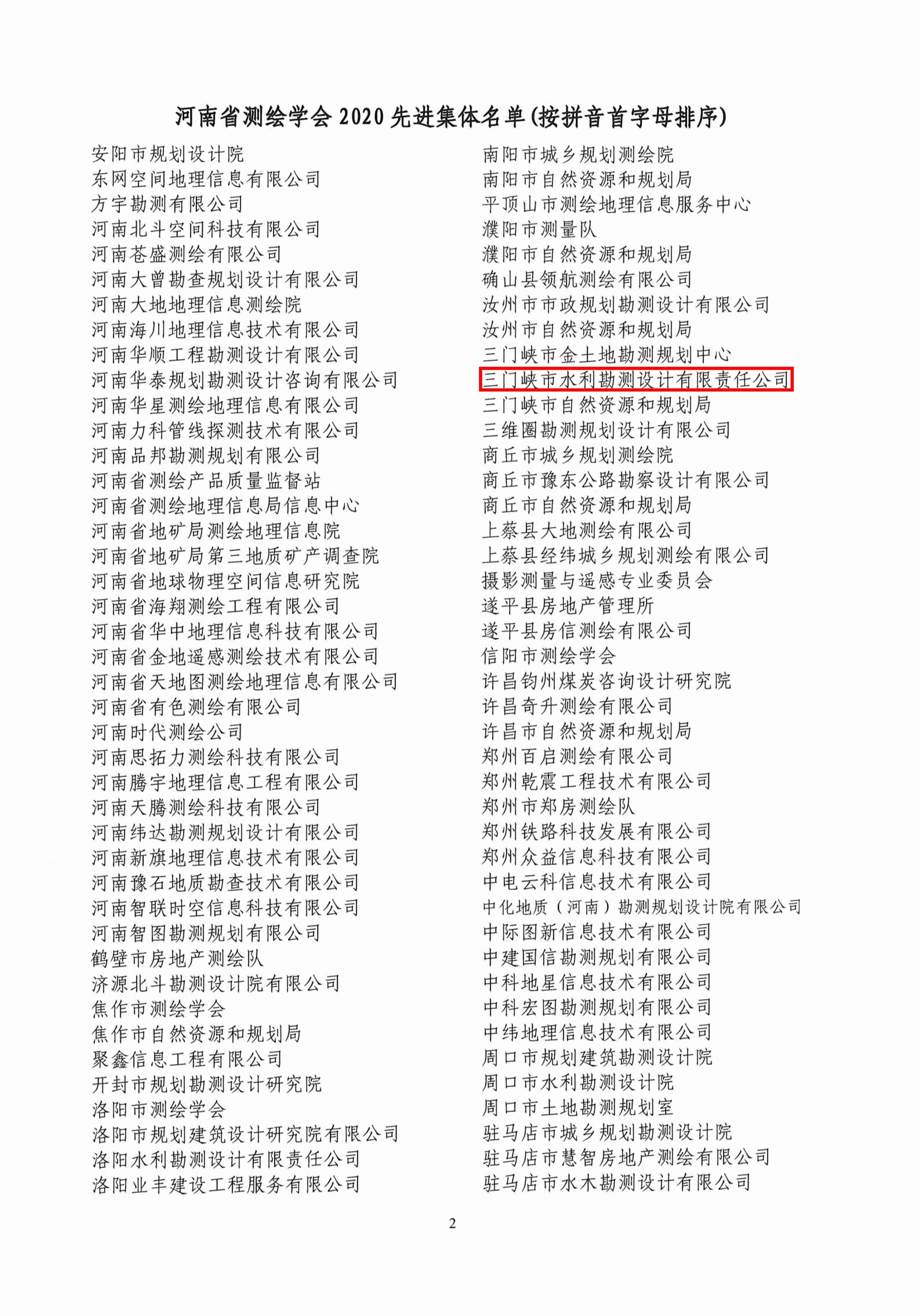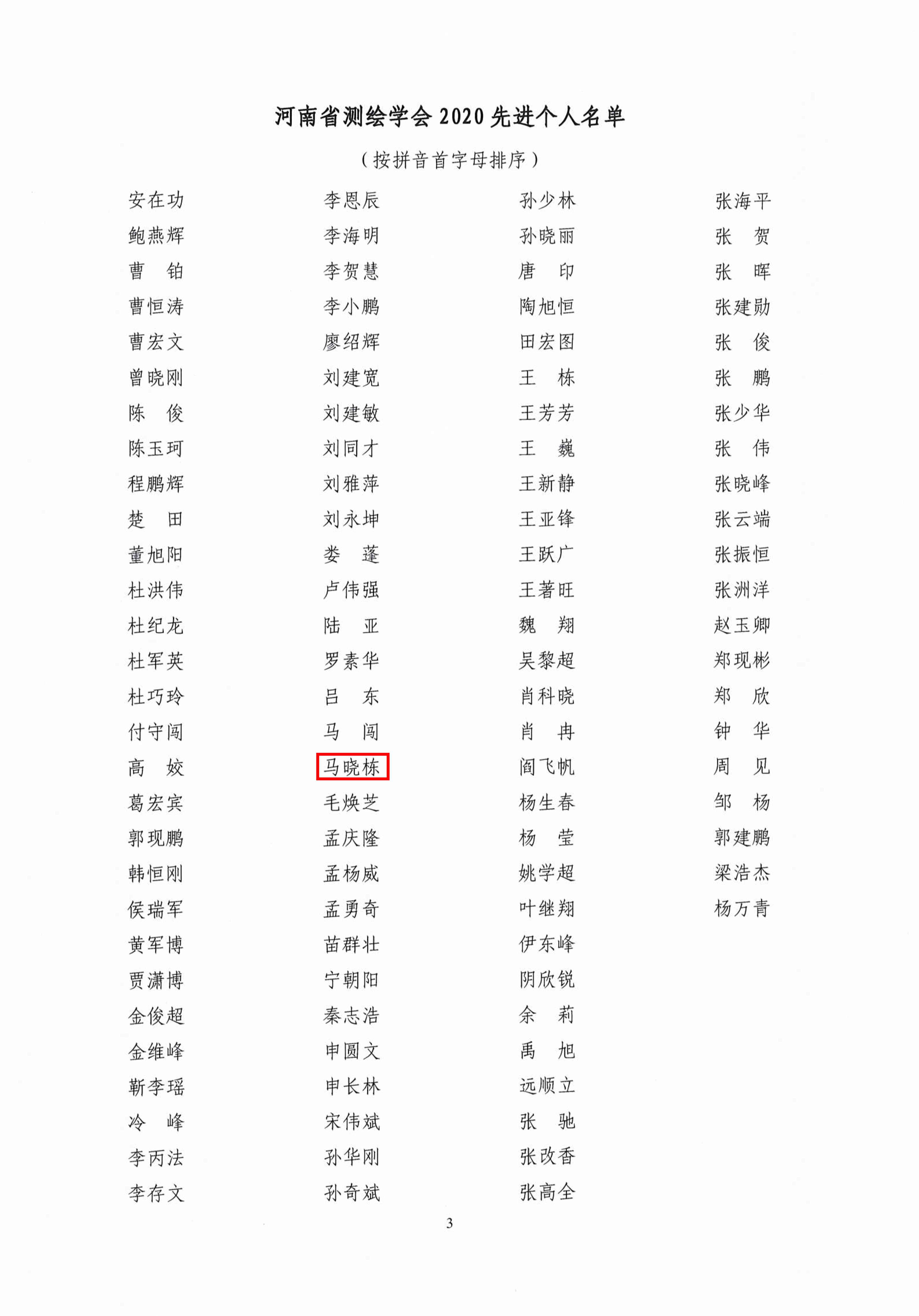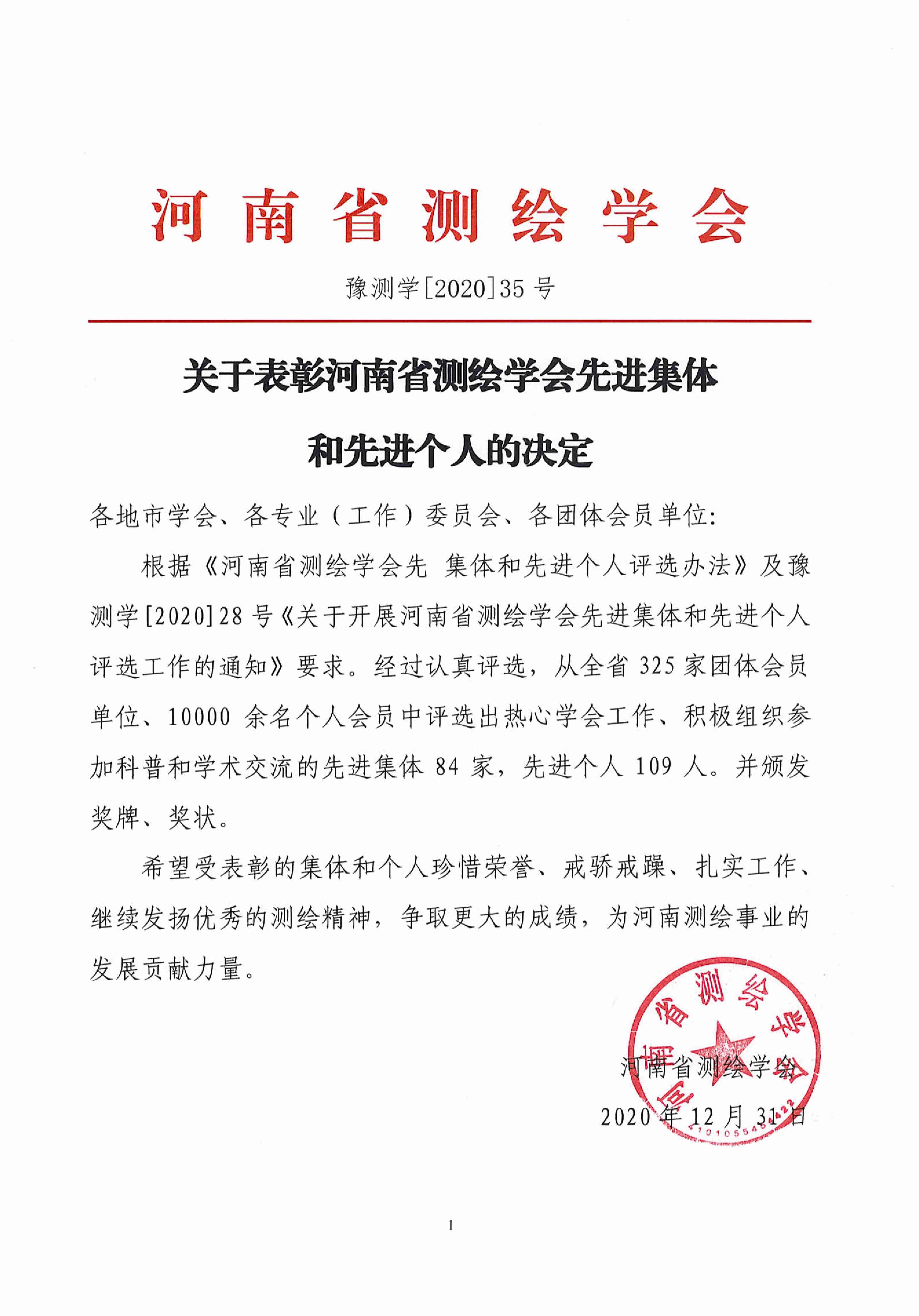 12月31日,在2020省測繪學(xué)會先進集體及個人評選中,我司榮獲2020年度河南省測繪學(xué)會先進集體,公司員工馬曉棟榮獲先進個人。