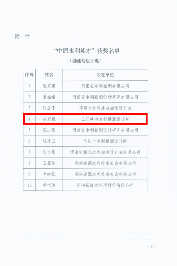 近日,河南省水利學(xué)會公布了“中原水利英才”獲獎名單,我司趙宗銳同志榮獲“中原水利英才”榮譽稱號。
