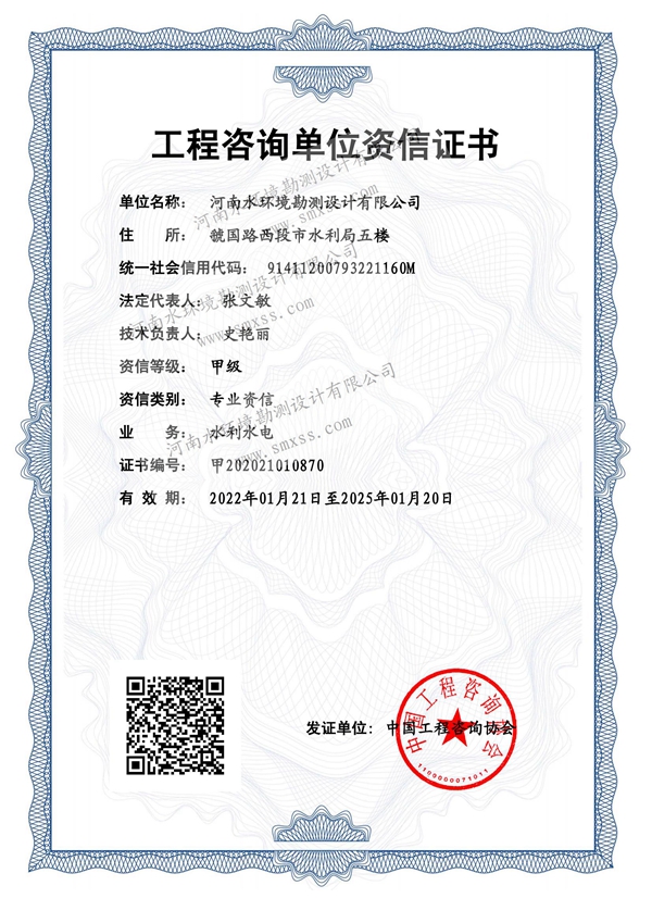 近日,我公司順利通過(guò)工程咨詢單位資信評(píng)價(jià)并取得甲級(jí)資信證書。