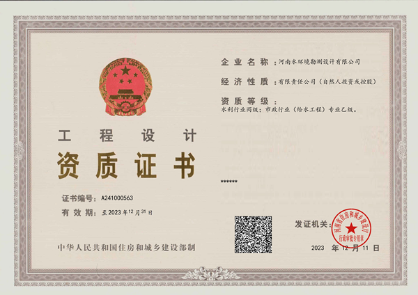 近日,我公司順利通過市政行業(yè)(給水工程)專業(yè)乙級(jí)資質(zhì)。