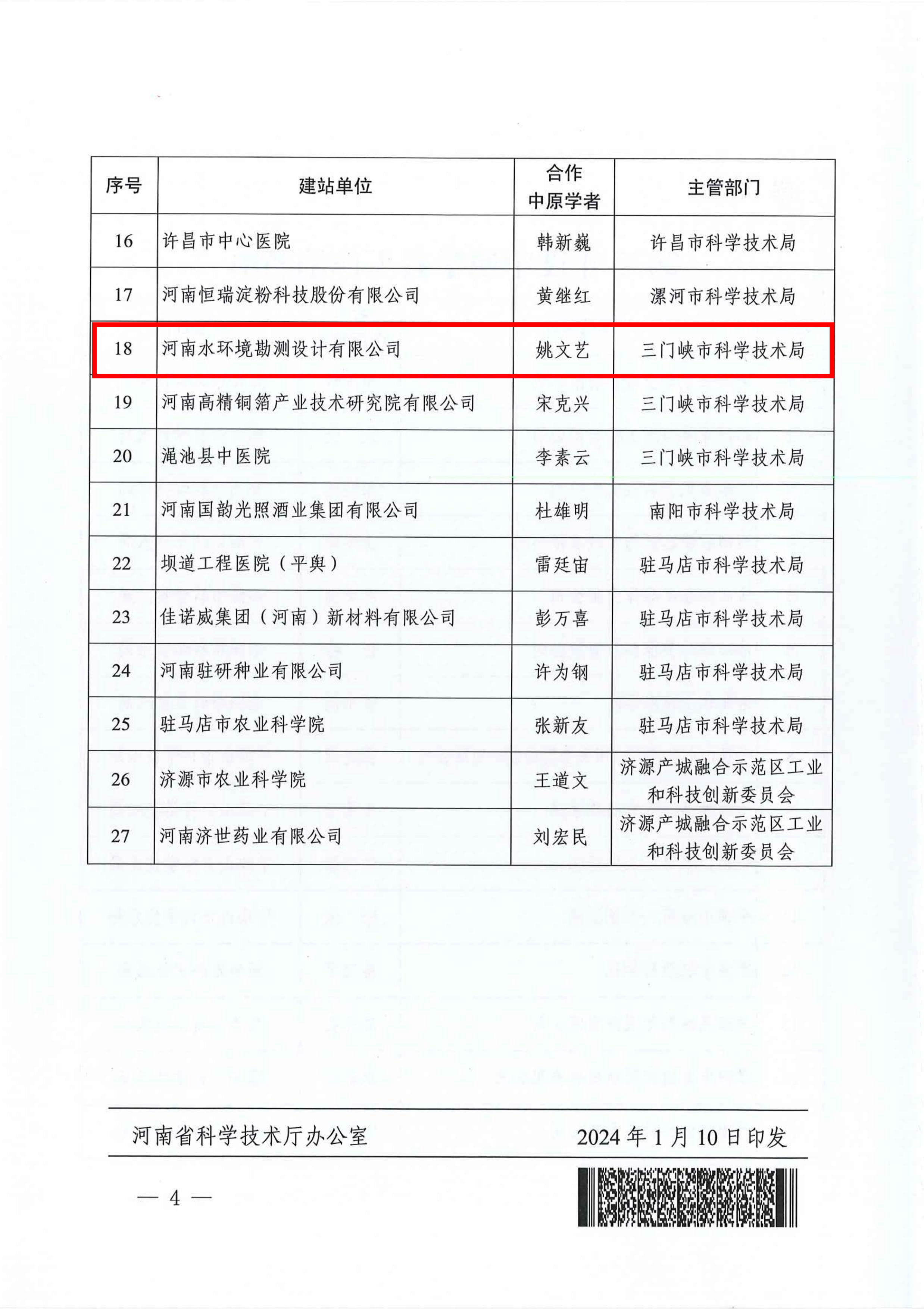 歲末年初,2024年1月10日,又傳喜訊,河南省科技廳公布了2023年度“中原學(xué)者工作站”名單,公司名列其中,這是河南省第一個(gè)與水土保持和生態(tài)修復(fù)相關(guān)的“中原學(xué)者工作站”,此次建站致力于圍繞黃河流域生態(tài)保護(hù)和高質(zhì)量發(fā)展,突出水土保持和生態(tài)修復(fù)相關(guān)研究。