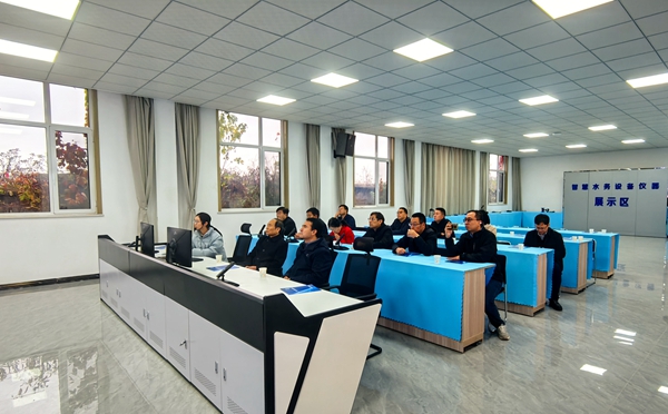 11月17日下午,中國工程院院士王復(fù)明攜項(xiàng)目團(tuán)隊(duì)20余人到我院三門峽市智慧水務(wù)創(chuàng)新應(yīng)用示范基地調(diào)研指導(dǎo)! 三門峽市人民政府副市長艾合買提·艾開木、市水利局黨組書記、局長裴宗杰和公司總經(jīng)理趙宗銳陪同。到訪嘉賓考察了基地職能定位、智慧化建設(shè)情況,認(rèn)真聽取了精準(zhǔn)灌溉和精確計量理念在基地的研究和應(yīng)用,在控制大廳觀看了基地數(shù)字孿生演示,并進(jìn)一步了解了我院科技研發(fā)及智慧水務(wù)業(yè)務(wù)開展情況。