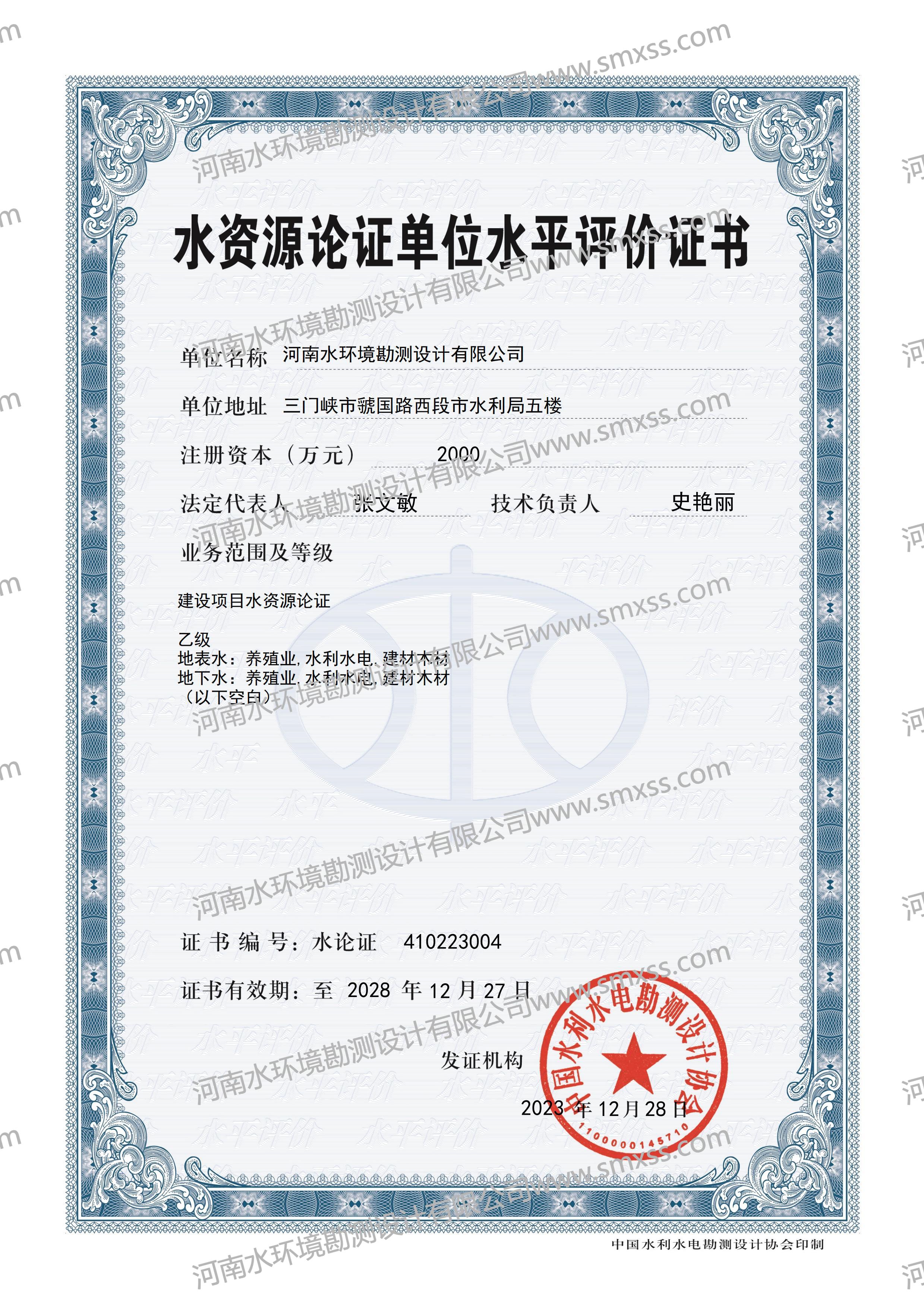 首頁(yè) > 資質(zhì)榮譽(yù) > 資質(zhì)證書(shū)水資源論證評(píng)價(jià)證書(shū)