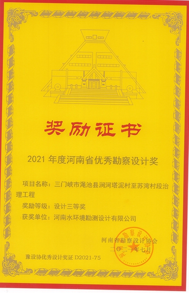 2021年度河南省優(yōu)秀勘察設(shè)計(jì)三等獎(jiǎng)