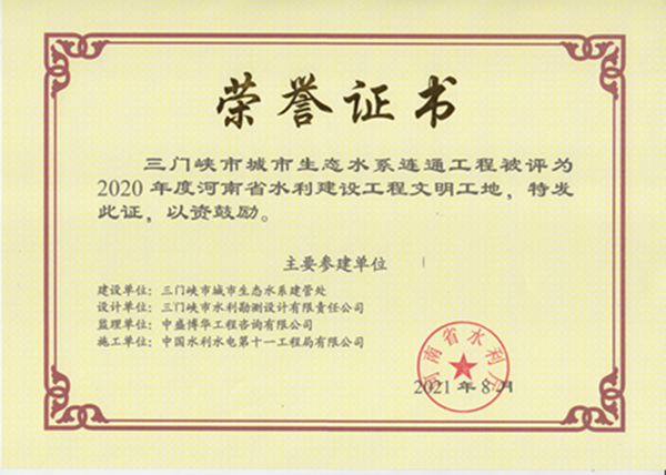 三門峽市城市生態(tài)水系連通工程輸水方案榮獲2021年度河南省勘察設(shè)計(jì)行業(yè)優(yōu)秀QC小組三等獎(jiǎng)