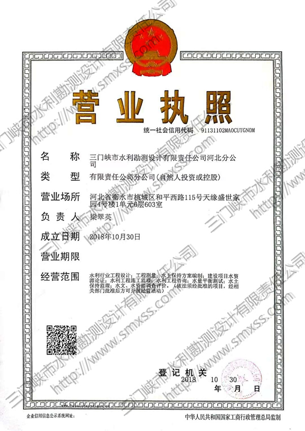 近日,三門峽市水利勘測設計有限責任公司河北分公司正式注冊成立,分公司的成立是我公司進一步擴大了市場范圍,同時,我司將以真情的合作、優(yōu)質(zhì)的服務為河北水利建設發(fā)展做出更多貢獻。