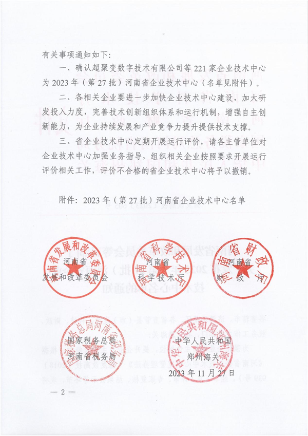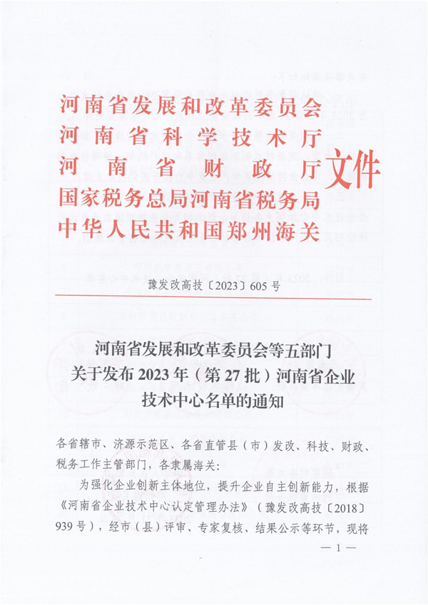 11月27日,河南省發(fā)展和改革委員會(huì)發(fā)布了《關(guān)于第27批擬新建省企業(yè)技術(shù)中心名單的公示》文件,我公司憑借自身的研發(fā)實(shí)力成功入選名單。