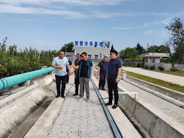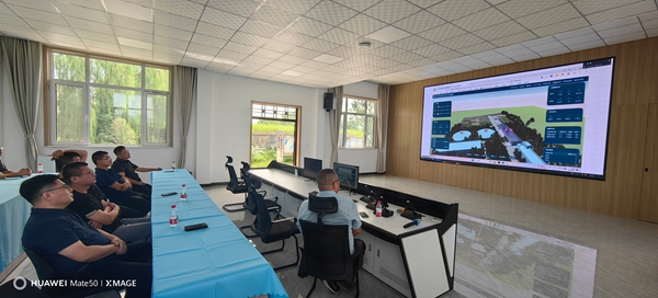 楊永剛董事長一行首先到我司智慧水務(wù)創(chuàng)新應(yīng)用示范基地實地考察參觀,技術(shù)總監(jiān)李雙江就示范基地及公司科技研發(fā)、智慧化建設(shè)及精準灌溉和精確計量等相關(guān)情況作詳細介紹,并在控制大廳觀看了基地數(shù)字孿生演示。