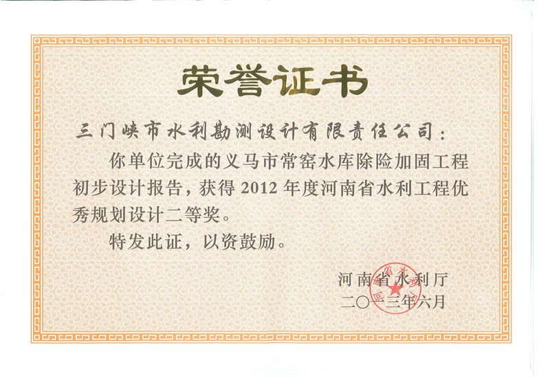 首頁(yè) > 資質(zhì)榮譽(yù) > 項(xiàng)目獲獎(jiǎng)2012年度省水利工程優(yōu)秀規(guī)劃設(shè)計(jì)二等獎(jiǎng)